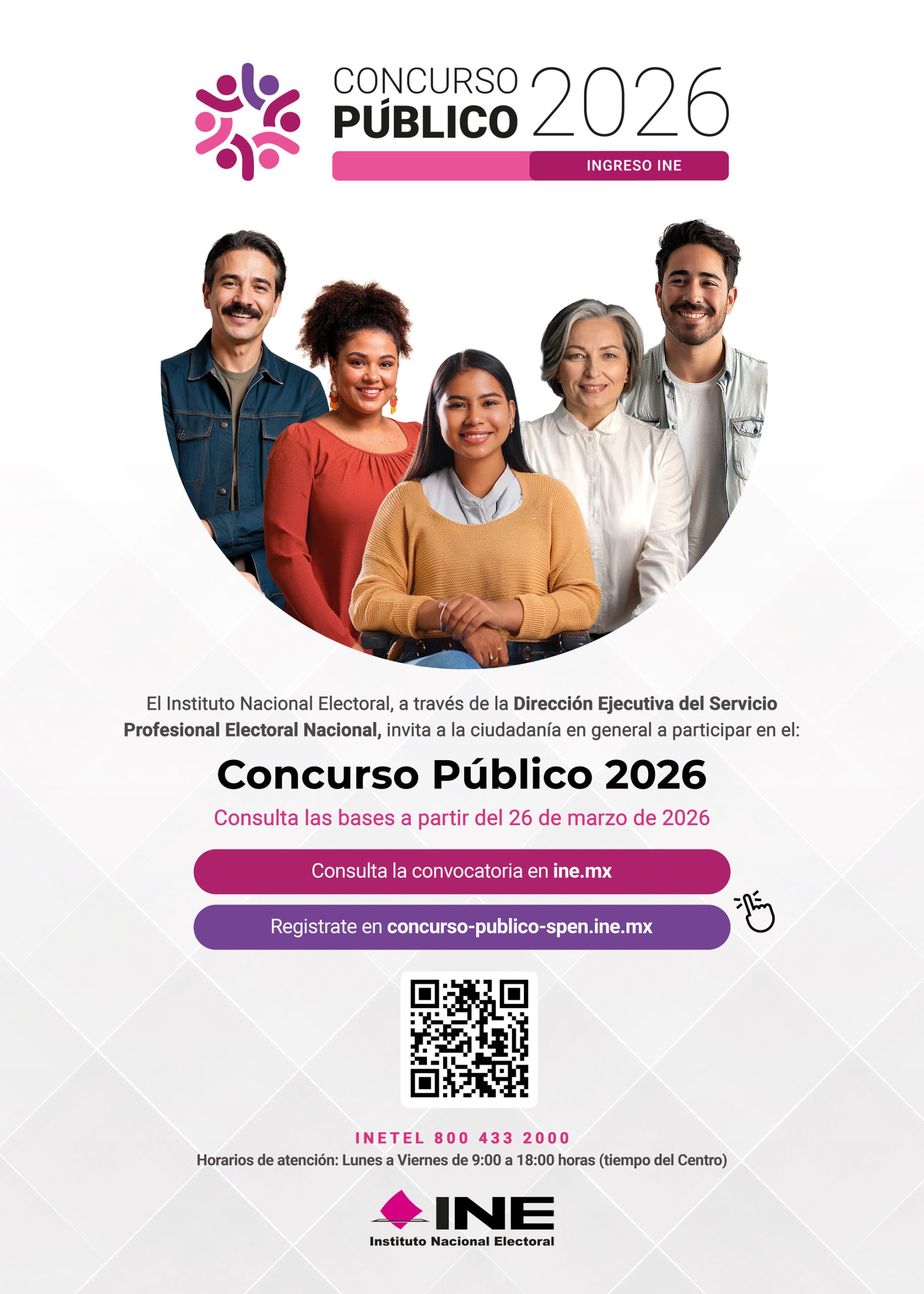 El Instituto Nacional Electoral en Baja California Sur (INE BCS) hace un llamado a la ciudadanía interesada en formar parte del Servicio Profesional Electoral Nacional (SPEN) a registrarse antes del cierre de la convocatoria del Concurso Público 2026, cuyo periodo de inscripción concluye el próximo 12 de abril.