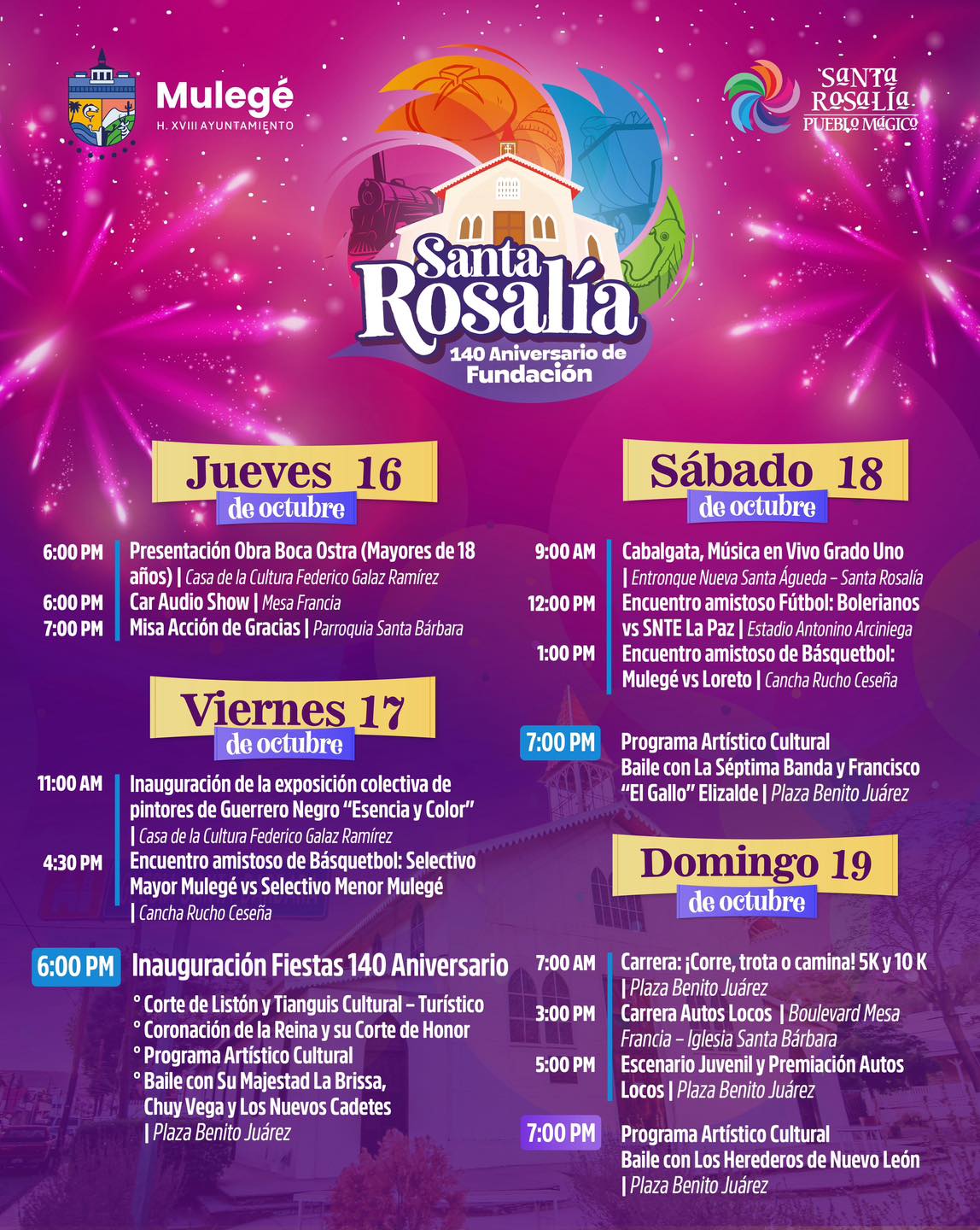 El Ayuntamiento de Mulegé extiende la invitación a toda la población para disfrutar de estas actividades y ser parte de los festejos que honran la grandeza de Santa Rosalía, cuna de historia y corazón de Mulegé.