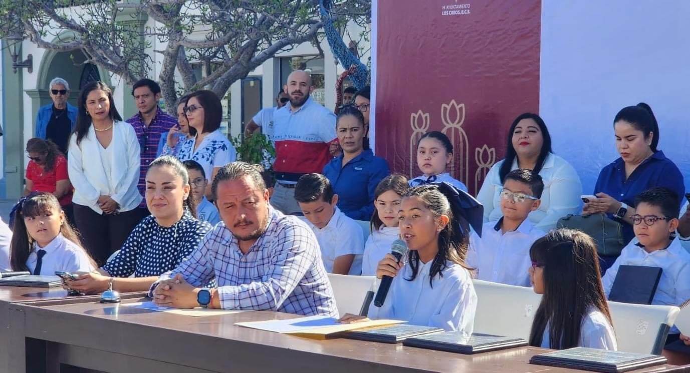 Dentro del marco de las festividades del Día de la Niñez, el Ayuntamiento de Los Cabos, -durante el acto cívico de honores a la bandera en la plaza Teniente Antonio Mijares-, instaló oficialmente el Cabildo Infantil 2024, encabezado por la presidenta municipal infantil, junto con la síndica municipal y el cuerpo de regidoras y regidores, compuesto por las niñas y niños que resultaron seleccionados; cabe destacar que la convocatoria para el Cabildo Infantil se lanzó en el mes de marzo.