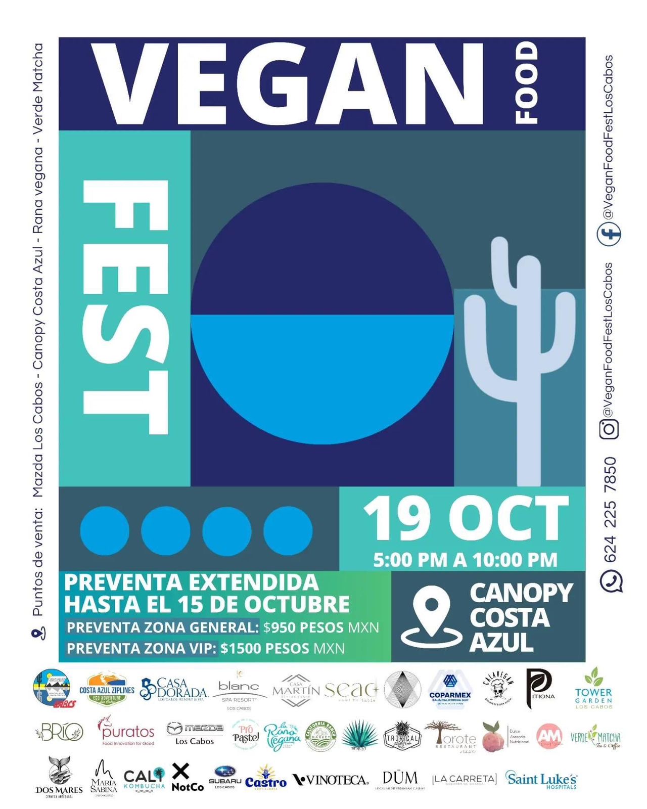 Para adquirir boletos o más detalles sobre el evento, las personas interesadas pueden visitar las redes sociales oficiales del festival: @VeganFoodFestLosCabos en Facebook e Instagram, o contactarse vía WhatsApp al (624)225-7850.