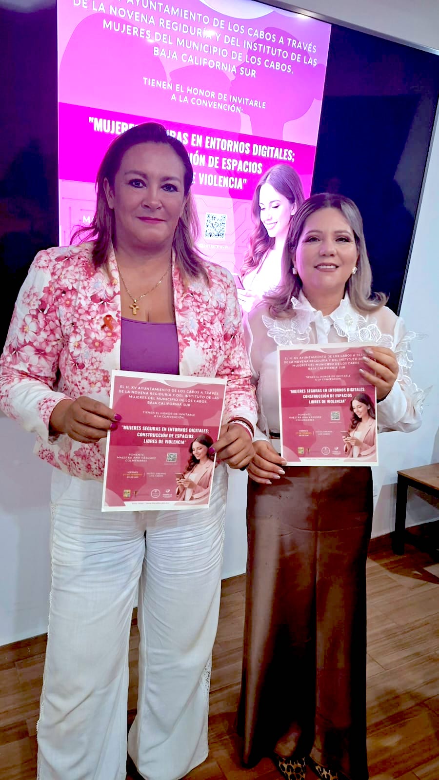 Los Cabos, Baja California Sur.– El XV Ayuntamiento de Los Cabos, a través de la IX Regiduría y del Instituto de las Mujeres del Municipio de Los Cabos (IMMLC), realizó una rueda de prensa para invitar a la ciudadanía a formar parte de la convención “Mujeres Seguras en Entornos Digitales; Construcción de Espacios Libres de Violencia”, que se llevará a cabo el próximo viernes 27 de febrero a las 09:30 horas en el Hotel Dreams Los Cabos.