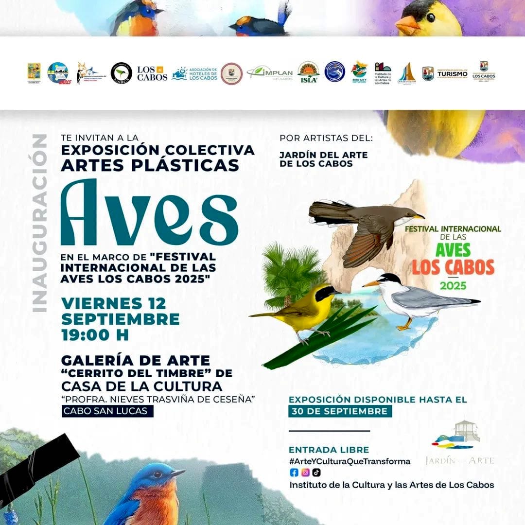 Los Cabos, Baja California Sur.- El XV Ayuntamiento de Los Cabos, en coordinación con el comité organizador del Festival Internacional de las Aves Los Cabos 2025, invita a la ciudadanía a la inauguración de la Exposición Colectiva de Artes Plásticas “Aves”, realizada por artistas del Jardín del Arte de Los Cabos.