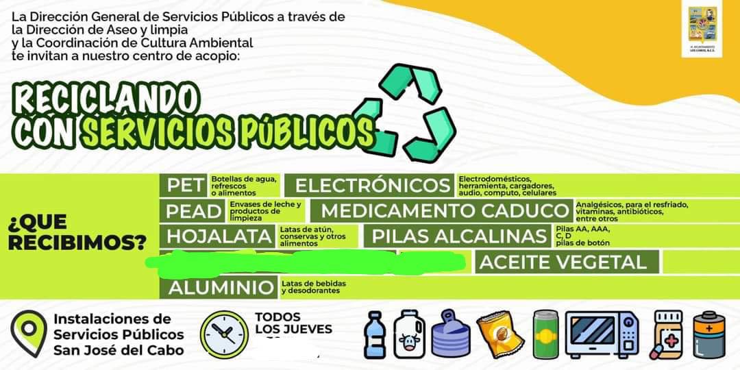La Dirección General de Servicios Públicos, a través de la Dirección de Aseo y Limpia y la Coordinación de Cultura Ambiental, que encabeza Zoila Chiquete Bastida invita a la ciudadanía a participar en la campaña “Reciclando con Servicios Públicos”, que se lleva a cabo todos los jueves.