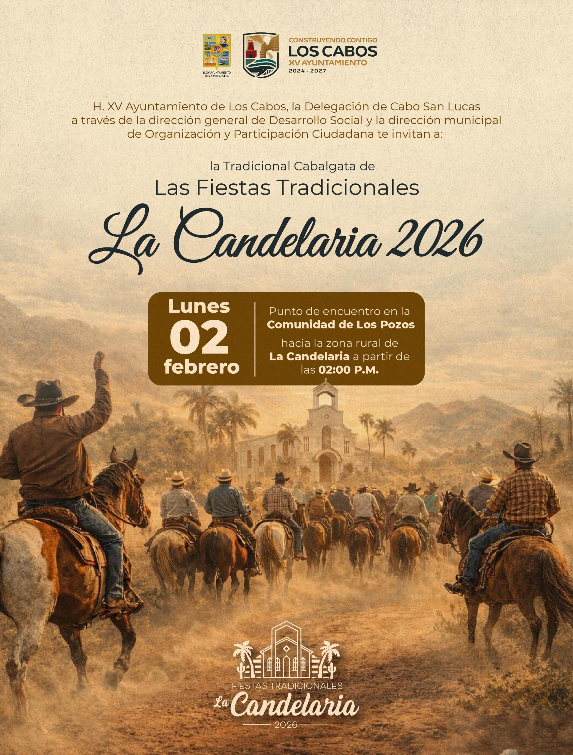 Los Cabos, Baja California Sur.– El Ayuntamiento de Los Cabos y la Delegación de Cabo San Lucas, a través de la Dirección General de Desarrollo Social y la Dirección Municipal de Organización y Participación Ciudadana, invita a la población en general a participar en las distintas actividades que se llevarán a cabo en el marco de las Fiestas Tradicionales La Candelaria 2026.