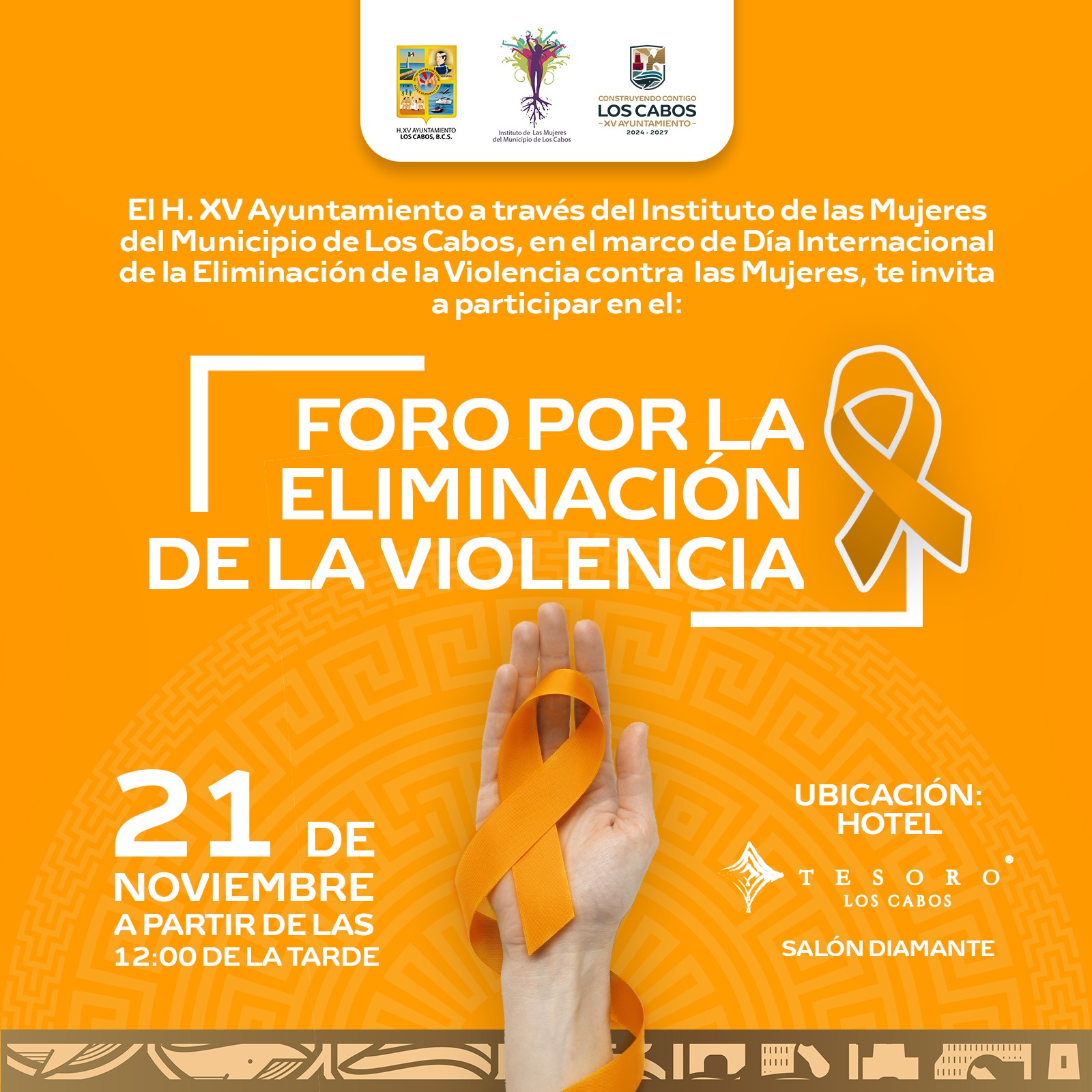 Los Cabos, Baja California Sur.- En el marco del Día Internacional de la Eliminación de la Violencia contra las Mujeres, el XV Ayuntamiento de Los Cabos, a través del Instituto de las Mujeres que dirige María de Jesús Cruz Medina, convoca a la ciudadanía a participar en el Foro por la Eliminación de la Violencia, un espacio de diálogo y reflexión orientado a fortalecer la igualdad sustantiva en el municipio.