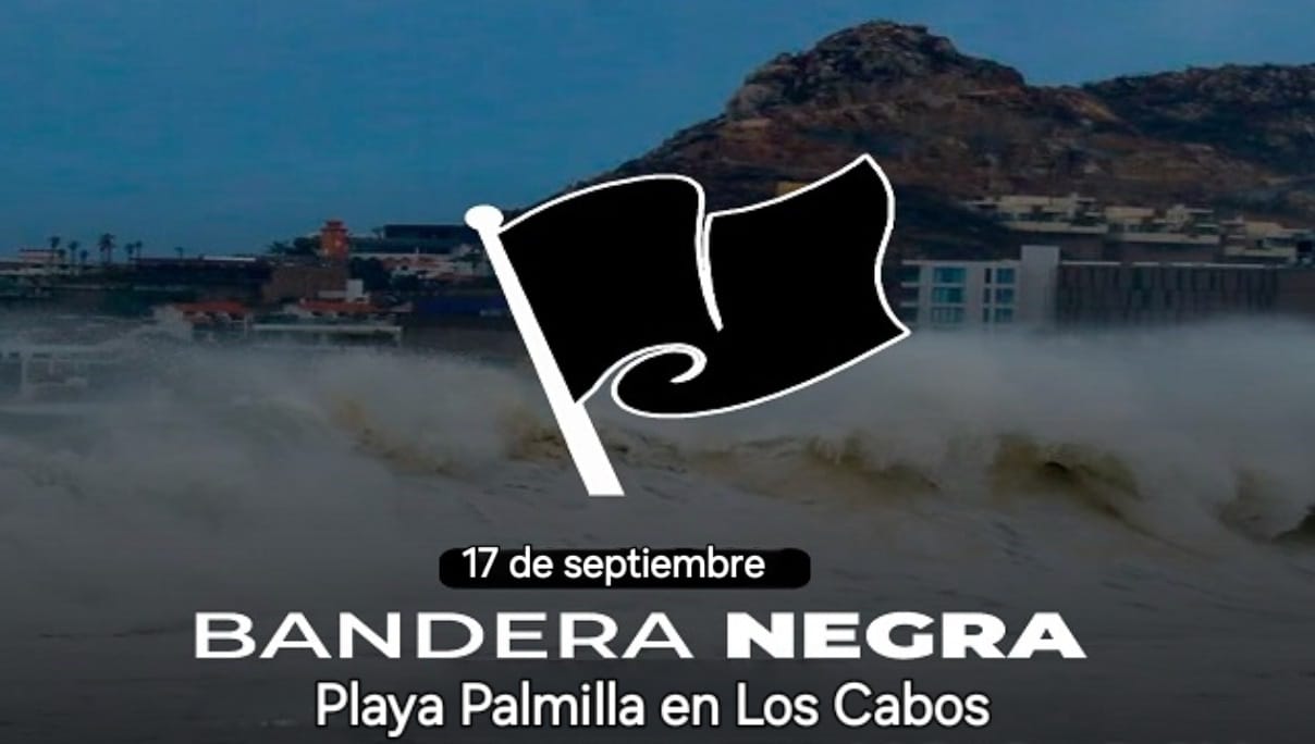 Los Cabos a B.C.S., a 18 de septiembre del 2024.- Derivado del paso de la tormenta tropical Ileana, personal de la Zona Federal Marítimo Terrestre (ZOFEMAT) en Los Cabos ha izado en la playa Palmilla la bandera negra, debido a que las intensas lluvias del pasado fin de semana también repercutieron en la zona costera del municipio.