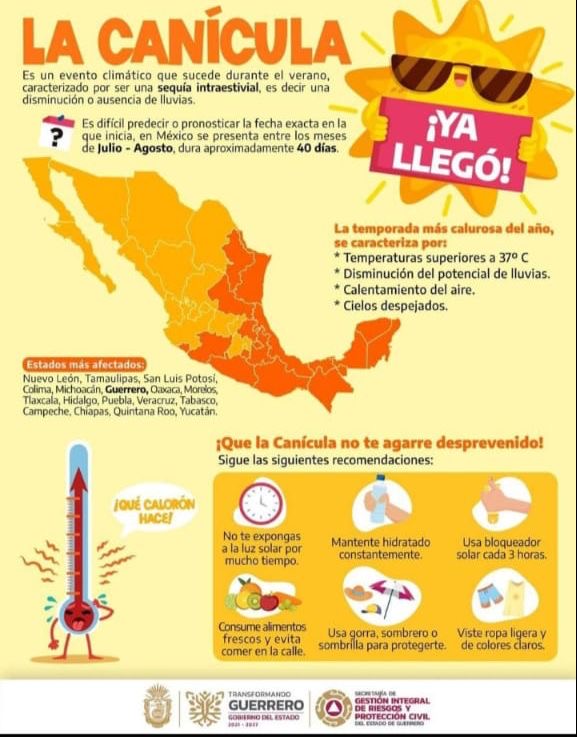 “La canícula, que se extiende típicamente por varias semanas, constituye un fenómeno climático estacional que requiere precauciones especiales por parte de la población; por ello se recomienda a la ciudadanía tomar las siguientes medidas preventivas para mitigar los efectos adversos de las altas temperaturas: hidratarse adecuadamente, preferiblemente agua, para evitar la deshidratación, usar protector solar, sombreros o gorras, y ropa ligera de colores claros para reducir la exposición directa a los rayos del sol”, indicó la titular de Protección Civil en Los Cabos, Leticia Rivera.