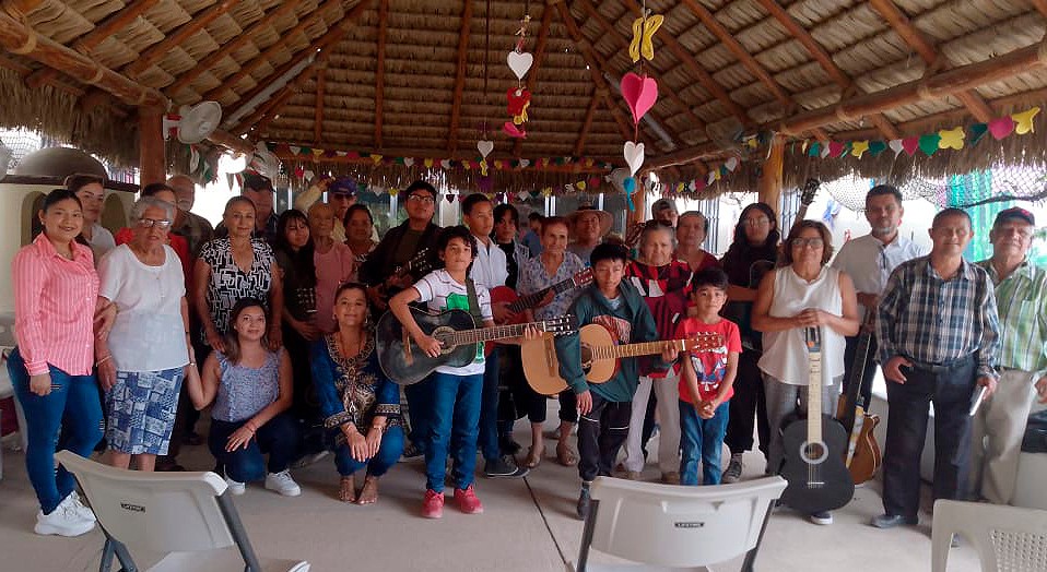Los docentes Ángel Ojeda y Brenda López, movilizaron a las niñas, niños, adolescentes y personas adultas que forman el grupo de la escuela de música para sorprender a las y los abuelitos con más de 40 minutos de música variada.