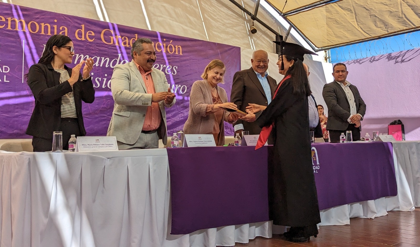 La Paz, B.C.S La Universidad Mundial (UM) celebró su ceremonia de graduación entregando a la comunidad sudcaliforniana más de un centenar de nuevos profesionistas de las licenciaturas en Administración, Administración y Gestión de Turismo, Arquitectura, Arquitectura de Interiores, Diseño e Industrial del Vestido, Criminología, Derecho, Diseño Gráfico Digital, Mercadotecnia, Gastronomía, Nutrición, Fisioterapia y Psicología; nuevos egresados de las especialidades en Psicología Jurídica, Communty Manager, Gestión y Administración de Servicios de Salud e Interiorismo y Diseño Mobiliario; maestros en Desarrollo Humano y Social, Administración y Gestión de Negocios, Política Fiscal y Tributaria, Derecho, así como egresados del Doctorado Internacional en Ciencias Políticas.