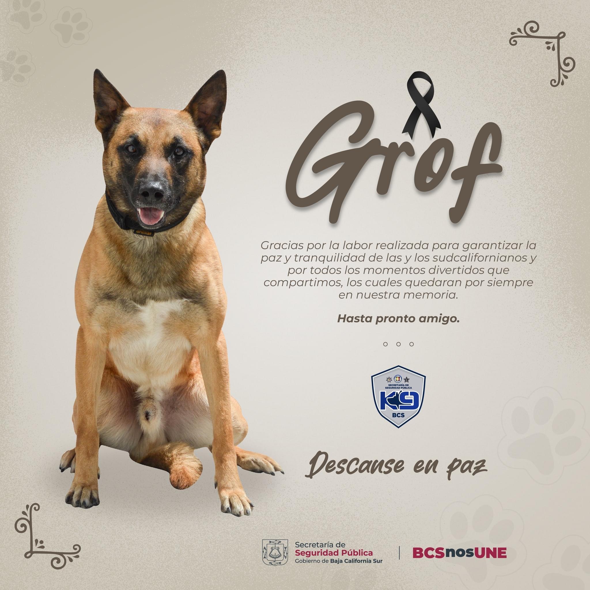 Sin embargo, se da a conocer que la mañana de este lunes el canino, de nombre Grof, fue localizado sin vida en las inmediaciones del arroyo que colinda con la colonia Las Garzas de esta ciudad capital, iniciándose una investigación para determinar las causas de su fallecimiento.
