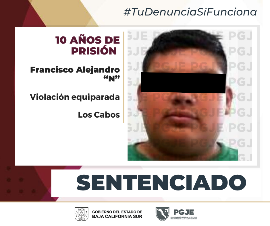 El 2022 la Procuraduría General de Justicia del Estado (PGJE), en Cabo San Lucas, recibió una denuncia de la parte ofendida en la que imputó el delito de violación equiparada en contra de Francisco Alejandro, en agravio de su hija.