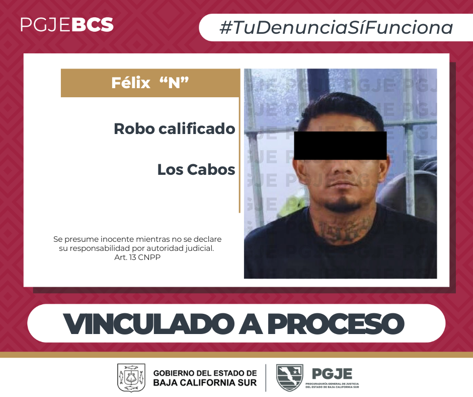 El agente del Ministerio Público tendrá un mes para efectuar la investigación complementaria y presentar datos de prueba contundentes que confirmen que Félix N, es probable responsable del delito de robo calificado, que fue denunciado por la víctima y que presumiblemente cometió la tarde del 19 de abril del año en curso, en un domicilio que se ubica en la colonia Portales en Cabos San Lucas, al que se introdujo y sustrajo una mochila sin autorización de quien pudiera otorgarla y fue sorprendido y asegurado por elementos de Policía de Seguridad Pública de Los Cabos
