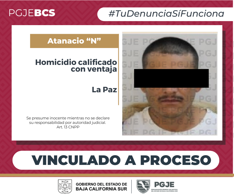 Al tener conocimiento del hecho ocurrido en la fecha descrita, la Procuraduría General de Justicia del Estado (PGJE) de Baja California Sur, inició la investigación e integró la Carpeta correspondiente para lograr establecer la probable participación del imputado en la comisión del hecho, en el que están relacionados dos hombres más.