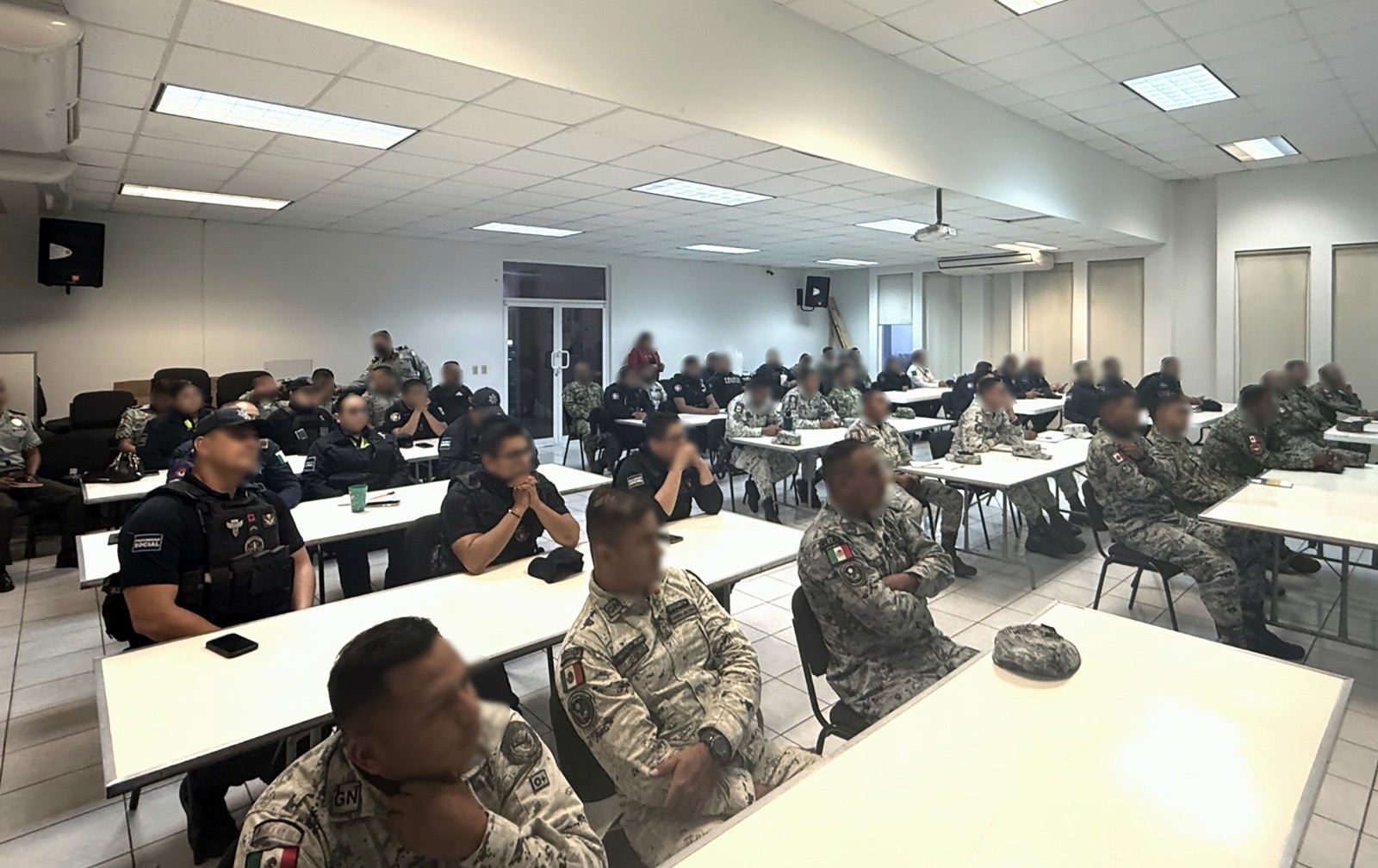 En colaboración con personal de la Subprocuraduría y del Ministerio Público de la Procuraduría General de Justicia del Estado (PGJEBCS), esta capacitación fue dirigida a elementos de la Policía Municipal, Policía Estatal, Secretaría de Marina–Armada de México (Marina), Secretaría de la Defensa Nacional (Defensa) y Guardia Nacional (GN).