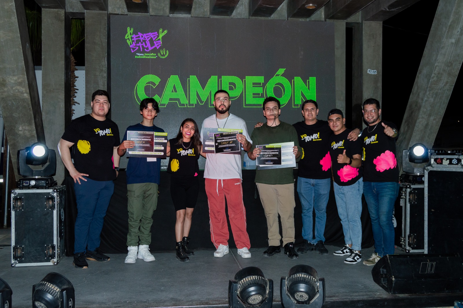 El resultado correspondió con un primer lugar para Fernando Jiménez Acosta, conocido como “DmenT AF”, quien recibió un premio de 6 mil pesos. El segundo lugar Derek Baez Trasviña, “Derek”, quien obtuvo una gratificación de 2 mil pesos, el tercer espacio Rodrigo de los Santos Cervón, “Saint”, a quien se le otorgó la cantidad de mil pesos.