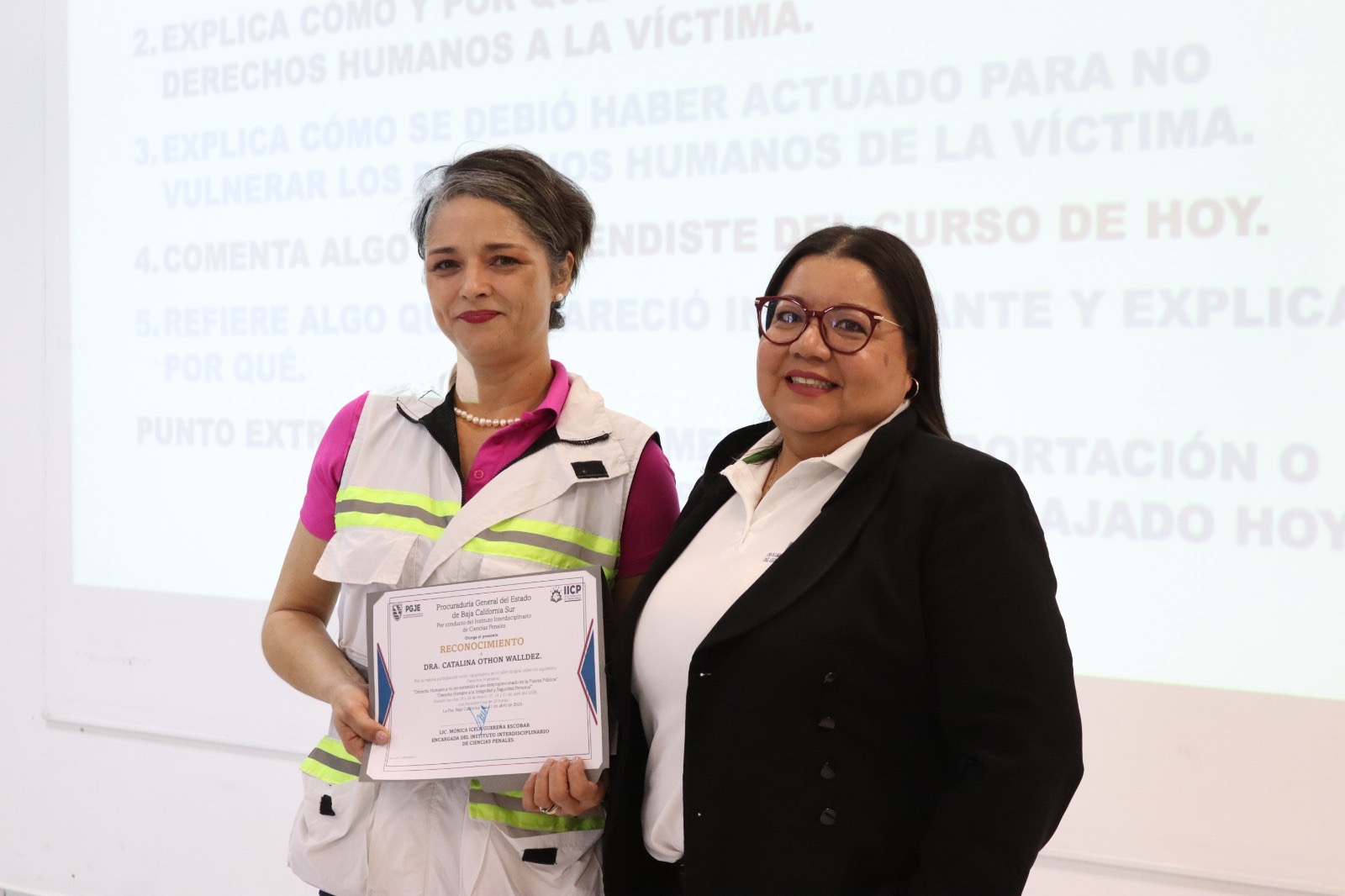 El taller fue impartido por la Mtra. Catalina Othón Walldez, visitadora adjunta de la Comisión Estatal de Derechos Humanos (CEDH), quien abordó bajo una metodología teórico-práctica los temas: Derecho Humano a no ser sometido al uso desproporcionado de la fuerza pública, enfocado en los protocolos de actuación y la legalidad en el ejercicio de la autoridad y Derecho Humano a la integridad y seguridad personal. Centrado en la prevención de actos que vulneren la dignidad humana durante los procesos de justicia.