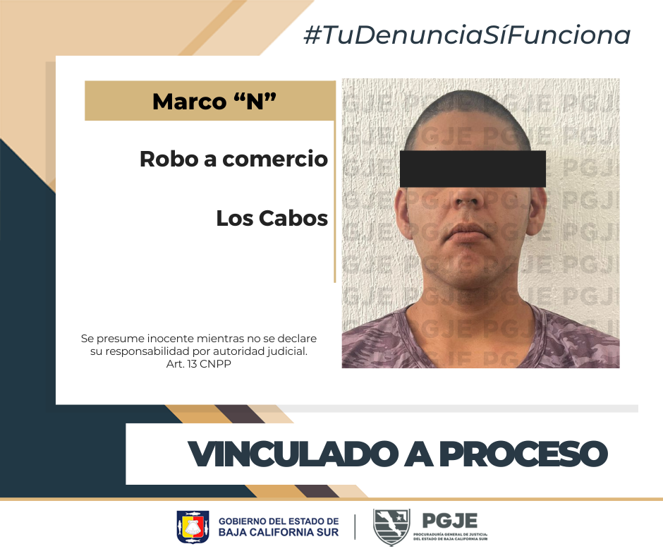 El agente del Ministerio Público de la Unidad Especializada en Investigación del Delito de Robo en San José del Cabo, tendrá 3 meses para realizar las investigaciones que permitan a un Juez de Control dictar la sentencia en contra de Marco N, quien quedó vinculado a proceso por el delito de robo cometido a establecimiento comercial abierto al público cometido con violencia moral por persona armada.
