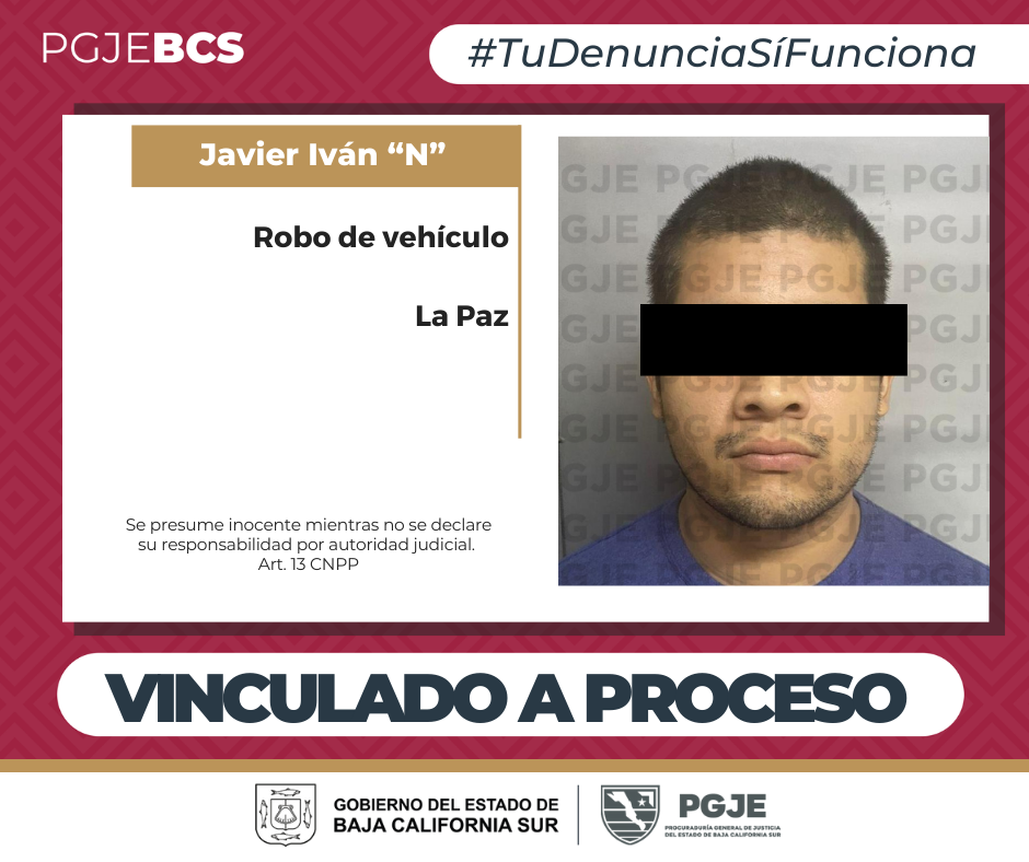 Por su probable participación en el delito robo de vehículo de motor, una persona del sexo masculino identificado como Javier Iván “N”, fue vinculado a proceso y con las medidas cautelares que le obligan a la firma periódica semanal ante la autoridad judicial.