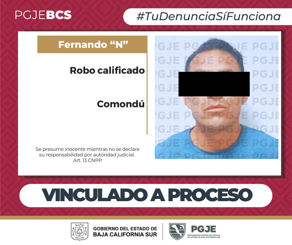 Las investigaciones indican que la mañana del 20 de marzo del 2025, Fernando “N”, se introdujo al domicilio ubicado en calle Francisco Villa y Primer Ayuntamiento, en colonia Pueblo Nuevo, en Ciudad Constitución, sustrayendo sin el consentimiento de quien legalmente pueda otorgarlo una televisión a color negro marca Sony de 42 pulgadas, computadora de escritorio marca HP color gris con negro , una tablet color gris, dos tanques de gas, una hielera, una llanta con rin, dos maletas con ropa, una bocina, cosméticos diversos, un abanico color negro con pedestal; una lona de plástico color azul, artículos eléctricos y herramienta diversa.
