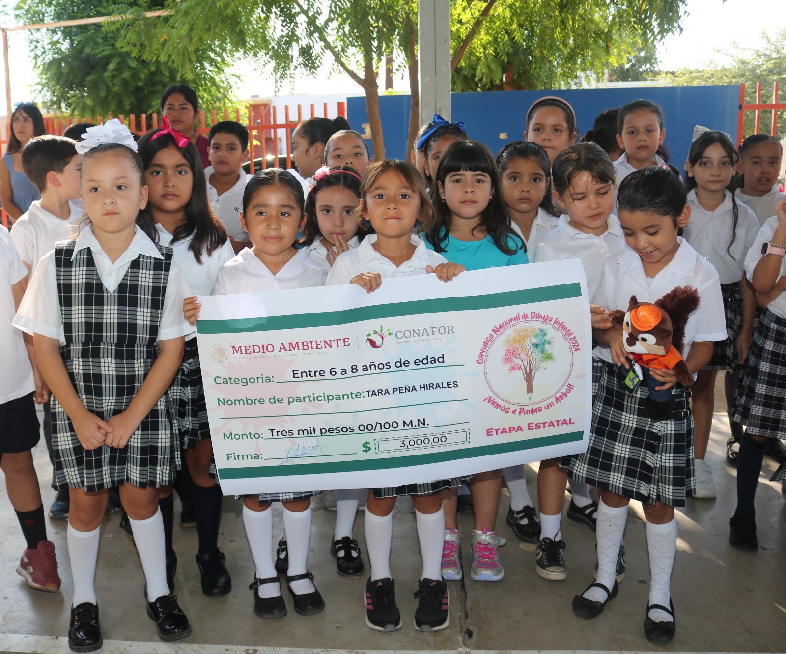 Acompañado de autoridades de los tres niveles de gobierno, Hernández Manríquez entregó diploma y cheque simbólico de 3 mil pesos a Tara Peña Hirales, así como un diploma de mención honorífica a Jorge Esteban León García. Ambos representaron al plantel anfitrión en la categoría de 6 a 8 años.