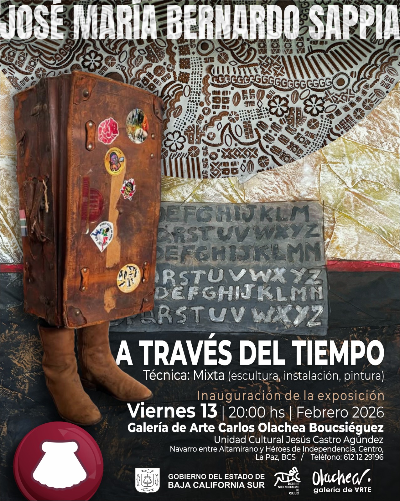El próximo viernes 13 de febrero a las 20:00 horas, la Galería de Arte Carlos Olachea Boucsiéguez presentará “A través del tiempo”, exposición del artista José María Bernardo Sappia. La muestra invita al público a conocer la evolución de su propuesta creativa a lo largo de casi cuatro décadas de trabajo ininterrumpido.