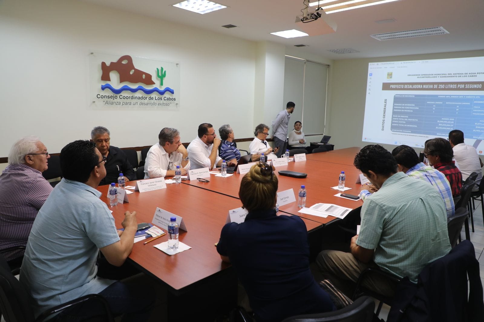 Los Cabos, B.C.S., 25 de junio 2024.- En reunión con integrantes del Consejo Coordinador de Los Cabos (CCC), que encabeza Julio Castillo Gómez, el director general de Agua Potable en Los Cabos, Ramón Rubio Apodaca presentó los avances significativos en varios proyectos hídricos cruciales y las futuras estrategias de gestión del agua.