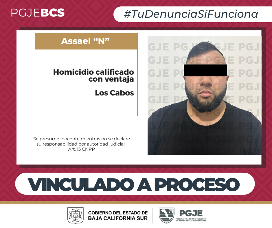 El viernes 28 de febrero Assael N, fue vinculado a proceso penal por homicidio calificado con ventaja y traición y se encuentra en prisión preventiva; por el hecho ocurrido la tarde del 17 de febrero en Cabo San Lucas.