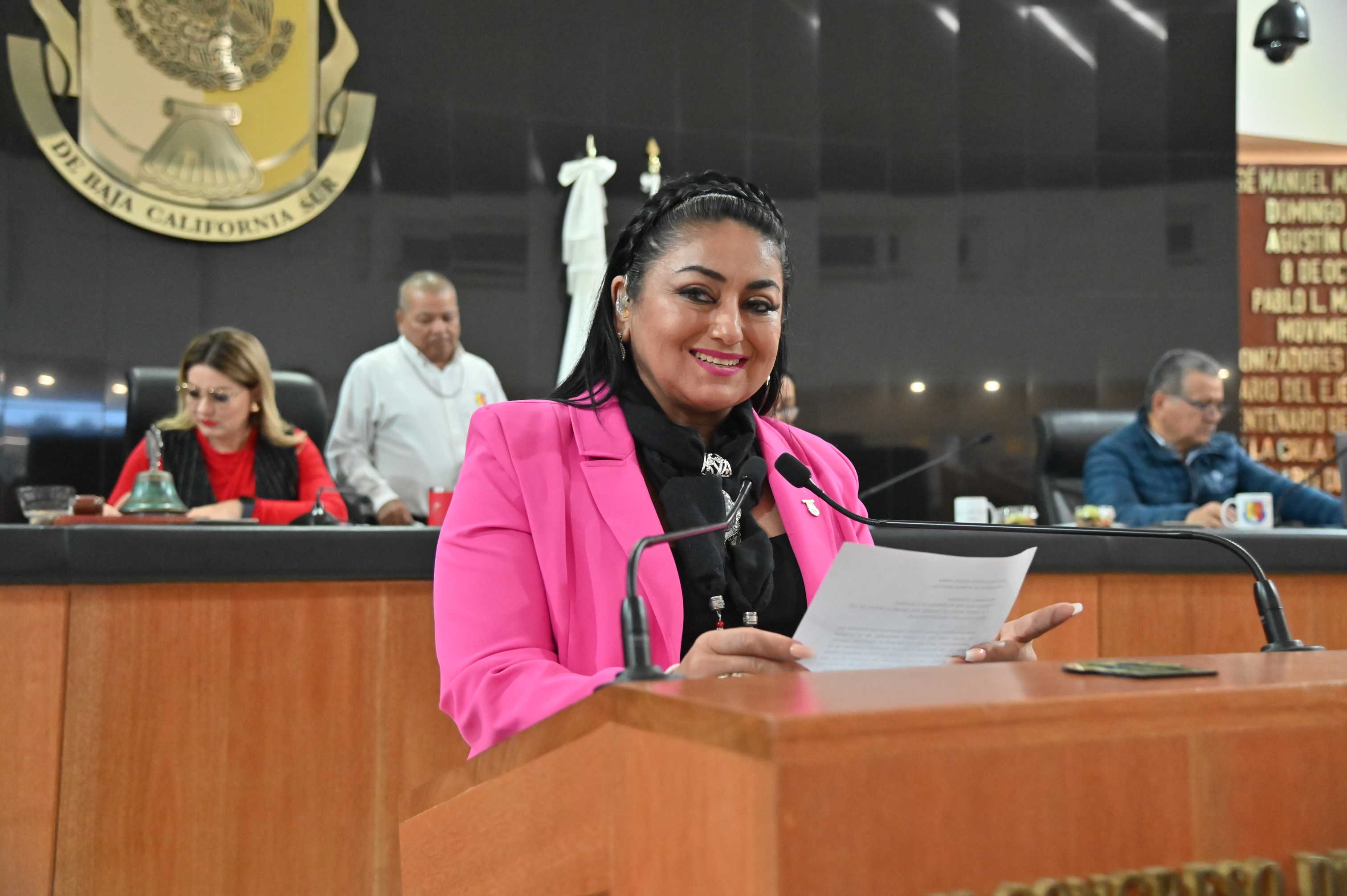 En tribuna, la diputada Dalia Verónica Collins Mendoza, dio lectura a la lista de las y los integrantes; del municipio de La Paz: Citlali Noemí Acosta Salgado, Susana Margarita Lara León, Ámbar Yaretsi Aceves Padilla, Rommel de la Toba, Dulce Perla Castro Montaño, José Ramón Soto García, Victoria Marisol de Jesús Contreras, Francisco Antonio Guadalupe Duarte Ruiz, Luis Ángel Higuera Gaynor, Gerardo Aguirre García, Luis Eduardo Sánchez Cárdenas; del municipio de Los Cabos: Pablo Javier González Martínez, Mario Javier González Pérez, Roberto Carlos, Jiménez González, Óscar Rodrigo Pulido Contreras, Alejandro Axel Herrera Mejía, Julián Moisés Magallón Ayala; del municipio de Loreto, Omar Alejandro Amador Álvarez, Zobeyda Elizabeth Pereda Alvarado, Maribel Flores Márquez y del municipio de Loreto, José Primo Maraver Romero.