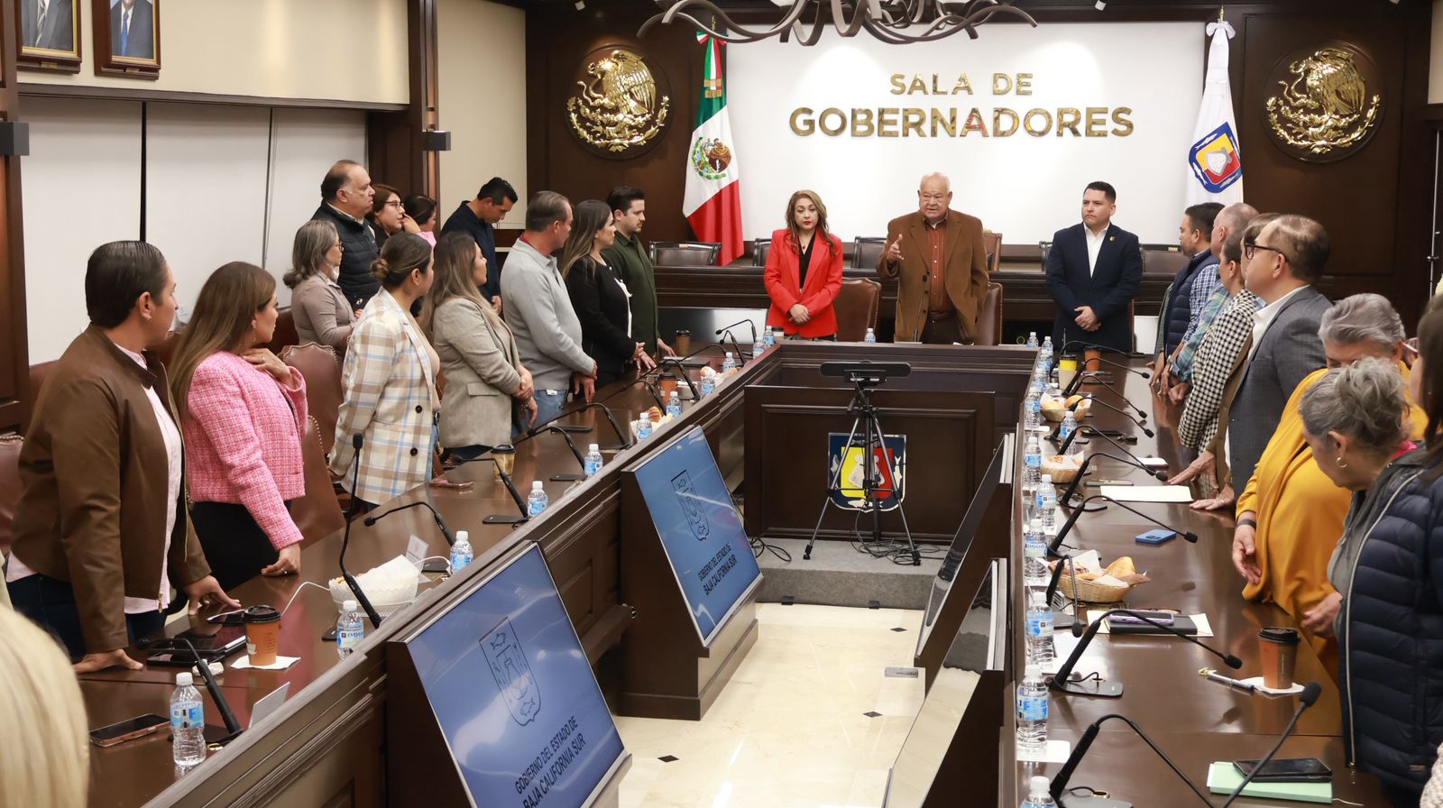 En un encuentro con diputadas y diputados de la XVII Legislatura del Congreso del Estado, magistradas y magistrados del Tribunal Superior de Justicia, así como con integrantes del gabinete legal, el gobernador Víctor Manuel Castro Cosío destacó la importancia de demostrar que en Baja California Sur los tres Poderes del Estado son capaces de tender puentes de diálogo y colaboración para hacer frente a los principales retos, actuando siempre con honradez y en beneficio del pueblo sudcaliforniano.