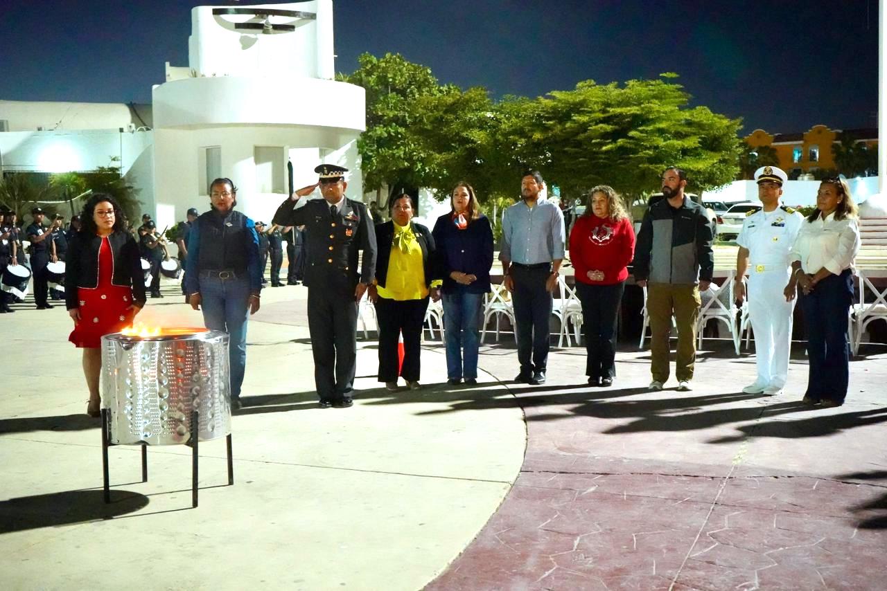 Como parte del programa, estudiantes de la Escuela Secundaria Técnica No. 16 realizaron una presentación de las banderas históricas que han marcado las distintas etapas de la transformación del país, desde el estandarte de la Virgen de Guadalupe utilizado por Miguel Hidalgo al inicio de la Independencia, hasta la Bandera Nacional vigente, adoptada oficialmente en 1968 y ratificada por la Ley sobre el Escudo, la Bandera y el Himno Nacionales en 1984. Asimismo, se contó con la participación de alumnas y alumnos del Cobach No. 04.
