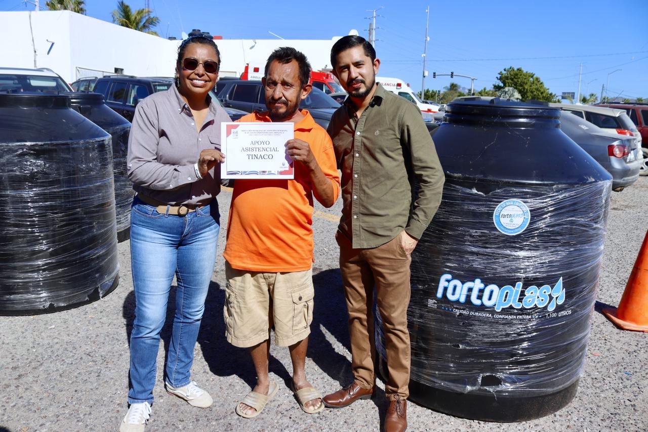 Asimismo, se informó que, junto con la entrega de tinacos, se distribuyó la Cartilla de Derechos de las Mujeres enviada por el Instituto Sudcaliforniano de las Mujeres (ISMujeres) del gobierno del estado, como una herramienta de información y acompañamiento para las mujeres beneficiarias.