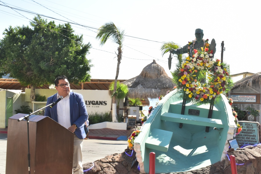 Los Cabos, Baja California Sur.- En representación del alcalde, Christian Agúndez Gómez, el Secretario General del H. XV Ayuntamiento de Los Cabos Alberto Rentería Santana, asistió a la convivencia de las familias fundadoras del Médano de Cabo San Lucas y al 14° Aniversario del monumento en honor a Oscar Montaño Herrera “El Yoca”, como pionero de la pesca en el puerto; evento organizado por la Asociación de Colonos del Médano y la Asociación Civil Yenekamú.