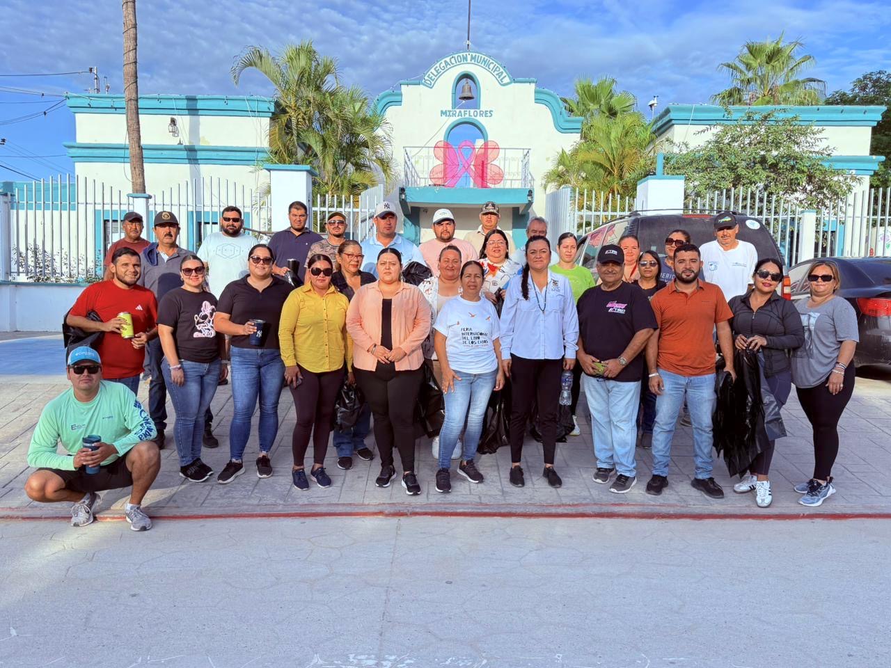 Los Cabos, Baja California Sur.- Como una iniciativa organizada por la coordinación de Ecología y Medio Ambiente a cargo de Gilberto García Lucero, realizaron labores de limpieza junto a la delegada municipal de Miraflores, María Aremy García García.
