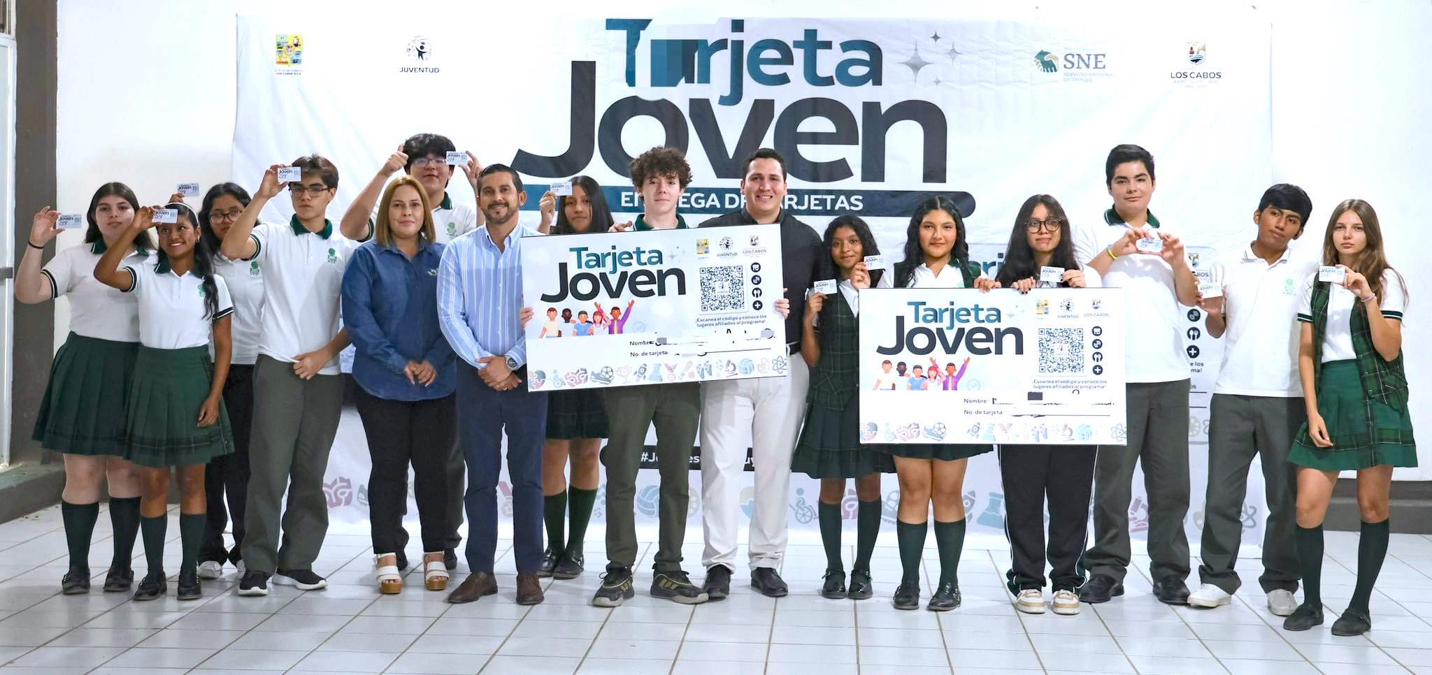 Los Cabos, Baja California Sur.- Con el objetivo de impulsar el bienestar, la participación y el desarrollo integral de las juventudes, el XV Ayuntamiento de Los Cabos, a través del Instituto de la Juventud (INJUVE), llevó a cabo la primera entrega del programa “Tarjeta Joven” en las instalaciones del Cobach 04 de Cabo San Lucas, con la presencia del director municipal de Gobierno Amado Ruiz Espinoza en representación del alcalde Christian Agúndez Gómez y el director general del INJUVE José Luis Gutiérrez Crespo.