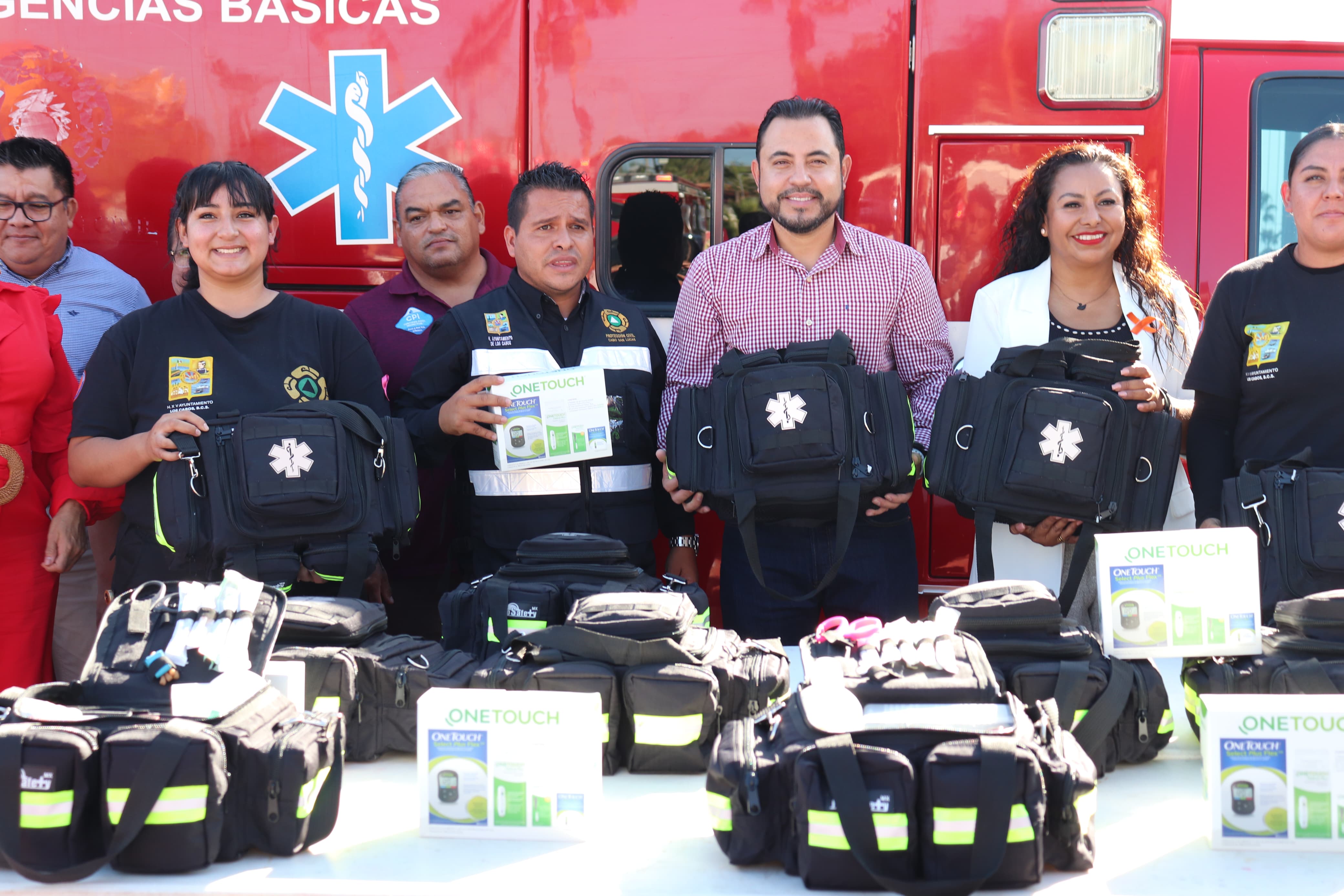 Los Cabos, Baja California Sur.- El XV Ayuntamiento de Los Cabos recibió por parte de un grupo de empresarios locales la donación de una ambulancia para servicios prehospitalarios, así como 15 paquetes que incluyen botiquines, chalecos de seguridad y glucómetros, equipo que recibió el presidente municipal Christian Agúndez Gómez, el cual se destinará para reforzar el trabajo de la Coordinación de Protección Civil de Cabo San Lucas.