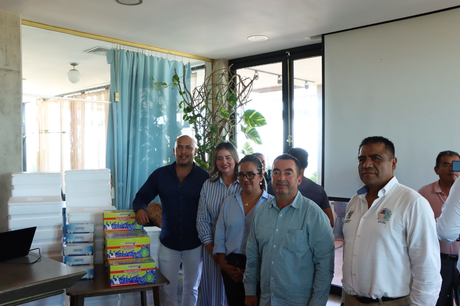 Los Cabos, B.C.S., 09 de agosto del 2024.- En apoyo a los esfuerzos por la preservación y cuidado de la Tortuga Marina en Los Cabos, la Dirección General de Ecología y Medio Ambiente a cargo de Raúl Verdugo Montaño, recibió la donación de 50 hieleras para trasportar huevos y crías, así como 10 cajas con guantes y 10 cajas con bolsas por parte de la empresa Pez Gato, para fortalecer las acciones del Programa Municipal de Protección de la Tortuga Marina.
