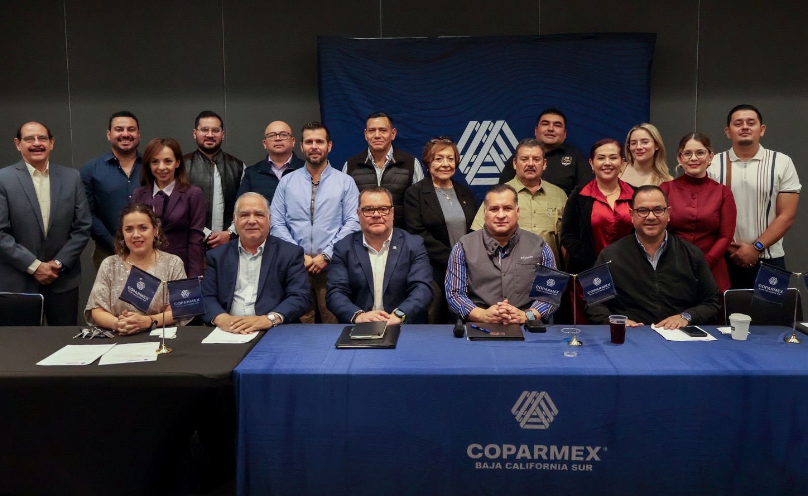 En el marco de la coordinación con los diferentes sectores de la sociedad, el secretario General de Gobierno, José Saúl González Núñez, sostuvo encuentro con integrantes de la Confederación Patronal de la República Mexicana (COPARMEX), encabezados por el presidente del Centro Empresarial de Baja California Sur, Paúl Valdiviezo Pérez, con quienes abordo temas relacionados con la prevención social de la violencia, así como con el desarrollo de la entidad.