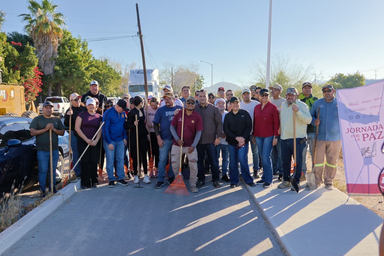 Acompañado del director general de la Junta Estatal de Caminos, Jorge Alberto Cota Pérez; de la subsecretaria de Gobierno, Claudia Meza de la Toba y del titular de la Secretaría del Trabajo, Bienestar y Desarrollo Social, Omar Zavala Agúndez el servidor público subrayó que estos trabajos forman parte de las Jornadas de Paz, las cuales se desarrollan en polígonos prioritarios de los cinco municipios de la entidad.