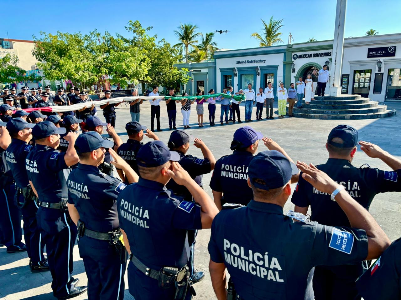 Esta mañana en la explanada de Palacio Municipal, el secretario general del XIV Ayuntamiento, José Guadalupe Higuera Espinoza, encabezó los honores cívicos en representación del alcalde Oscar Leggs Castro. Durante el evento, se dirigió a todas las personas servidoras públicas, expresando un sincero agradecimiento por su compromiso y dedicación al cumplimiento de sus deberes.