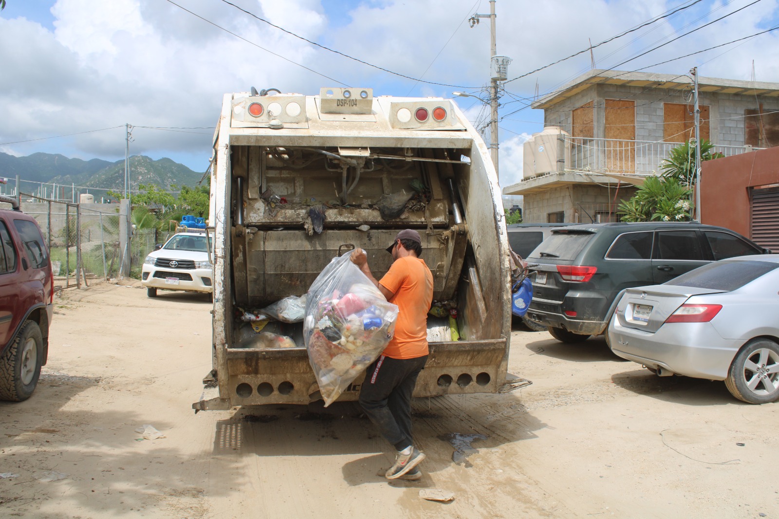 Los Cabos, Baja California Sur.- El XV Ayuntamiento de Los Cabos, a través de la Dirección Municipal de Servicios Públicos implementa acciones emergentes para regularizar las rutas de recolección de basura en el municipio, esto ante las afectaciones que registraron numerosas vialidades a causa de las lluvias.