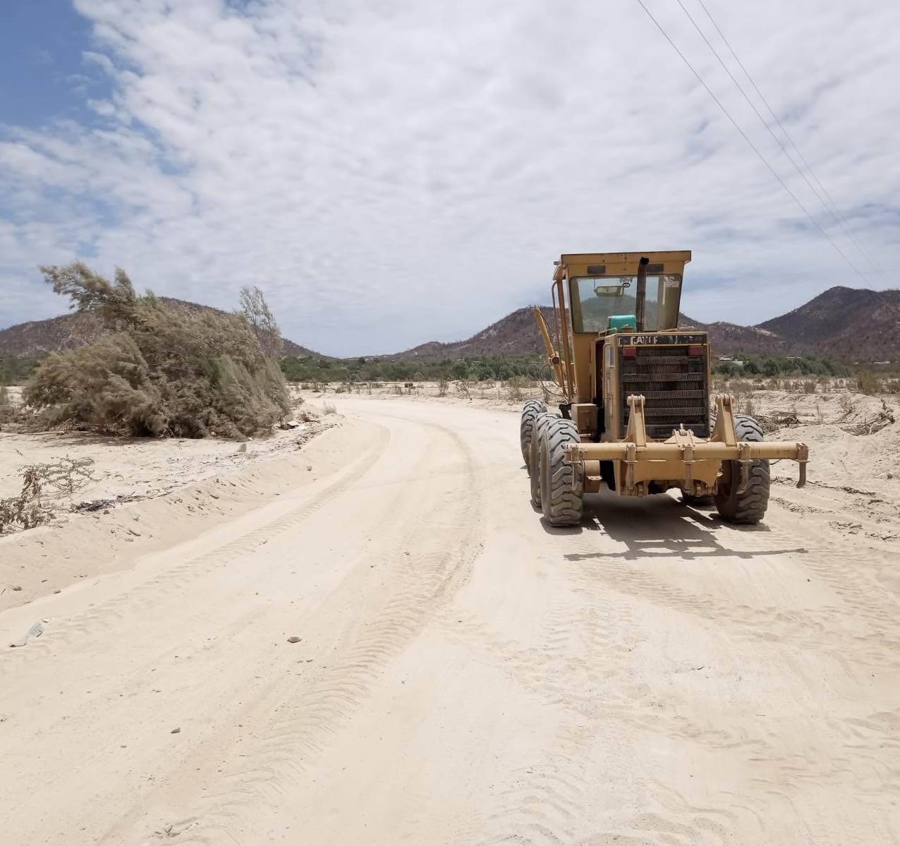 Los Cabos, B.C.S., 05 julio 2024.- La Dirección General de Servicios Públicos, encabezada por Leonel Leyva Luna a través del personal del área de Operación y Mantenimiento, llevó a cabo trabajos de nivelación y rastreo en calles de terracería y caminos alternos a la carretera Transpeninsular en Los Cabos.