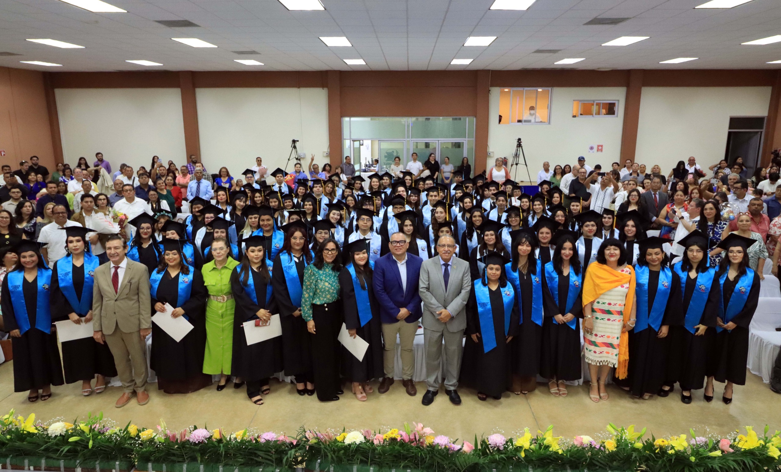 Subrayó que la esperanza de un país pasa por la educación, y que generaciones como la que hoy egresa son prueba de ello; jóvenes que ahora cuentan con las herramientas necesarias para construir un futuro distinto, siempre conscientes de la cultura a la que pertenecen y del compromiso social que conlleva recibir sus documentos de egreso.