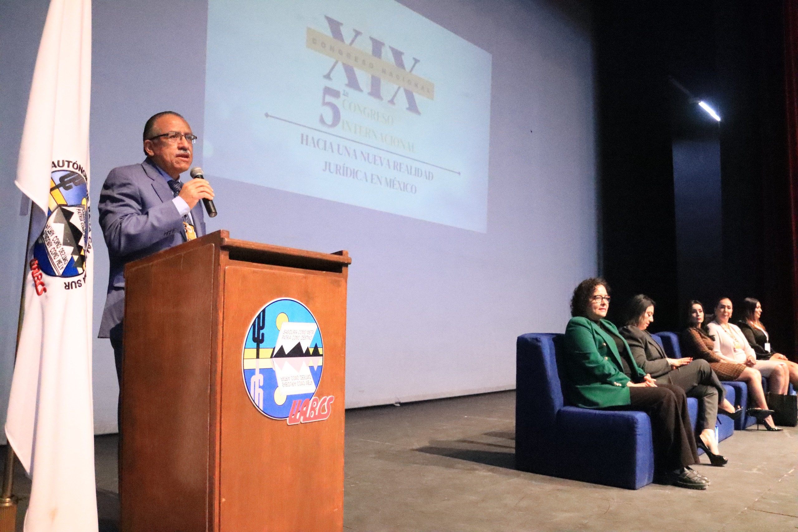 Al inaugurar los trabajos del XIX Congreso Nacional y V Internacional de Derecho, el rector de la Universidad Autónoma de Baja California Sur, Dr. Dante Salgado González destacó la relevancia de generar espacios desde la academia para reflexionar y dialogar sobre los desafíos actuales del marco jurídico en el país.