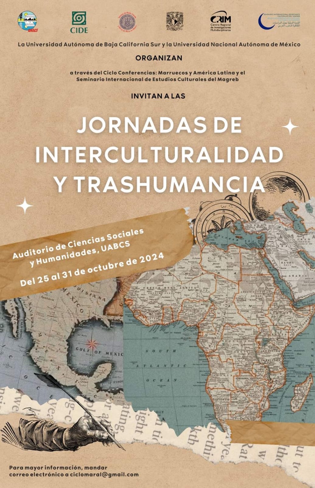 Será para organizar las Jornadas de Interculturalidad y Trashumancia que se coordinan a través del Ciclo de Conferencias: Marruecos y América Latina y el Seminario Internacional de Estudios Culturales del Magreb a cargo del Dr. Mehdi Mesmoudi y de la Dra. María Reyna Carretero Rangel (CRIM-UNAM) respectivamente.