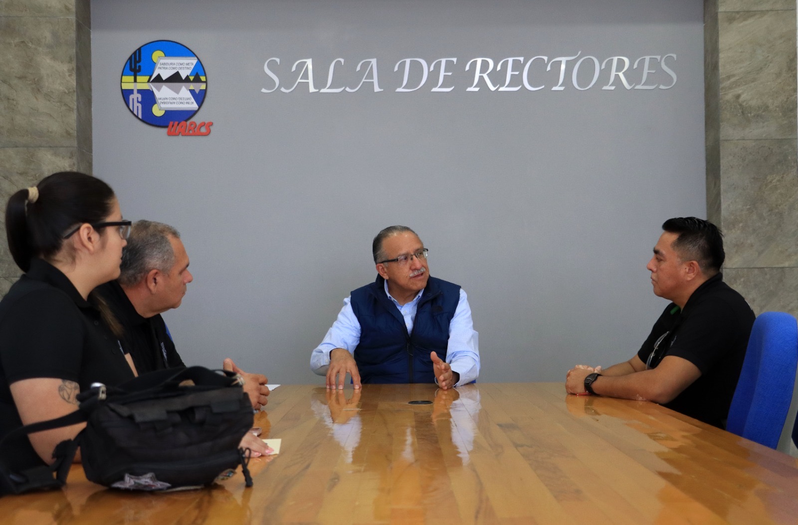 Además, sostuvieron un encuentro con el rector de la Uabcs, Dr. Dante Salgado González con quien abordaron temas relacionados con la ciberseguridad y las acciones preventivas a implementar en la institución.