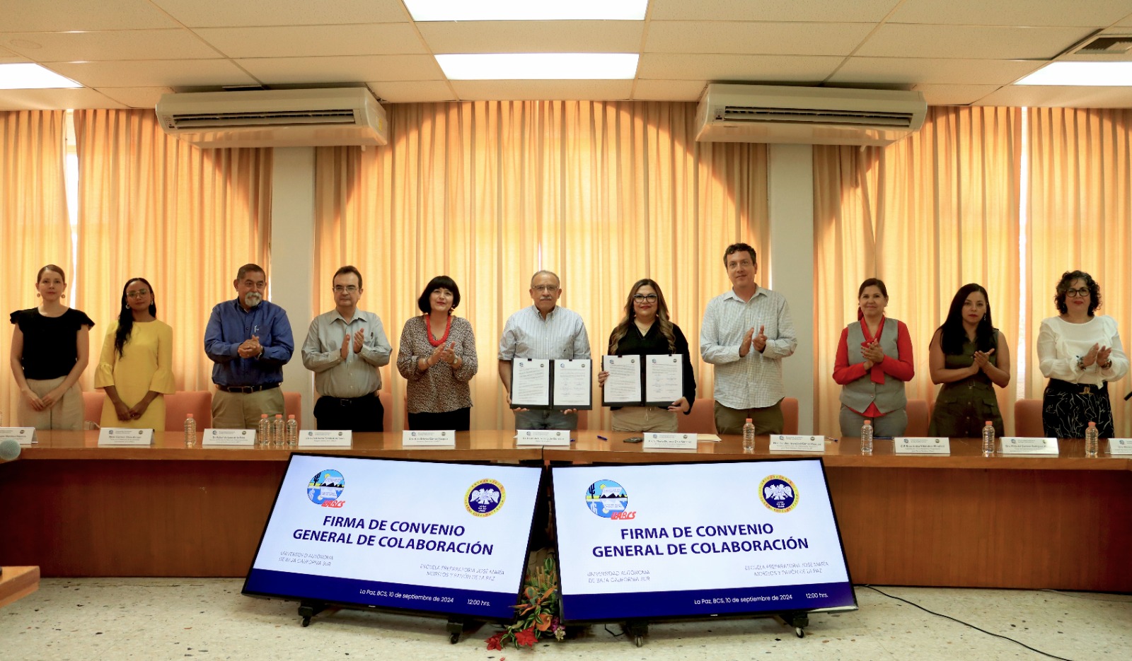 En un acto protocolario celebrado en la Sala del H. Consejo General Universitario, la Universidad Autónoma de Baja California Sur (UABCS) formalizó un convenio de colaboración con la Benemérita Preparatoria José María Morelos y Pavón, acuerdo que tiene por objeto impulsar programas y proyectos conjuntos que aborden temáticas prioritarias para ambas instituciones.