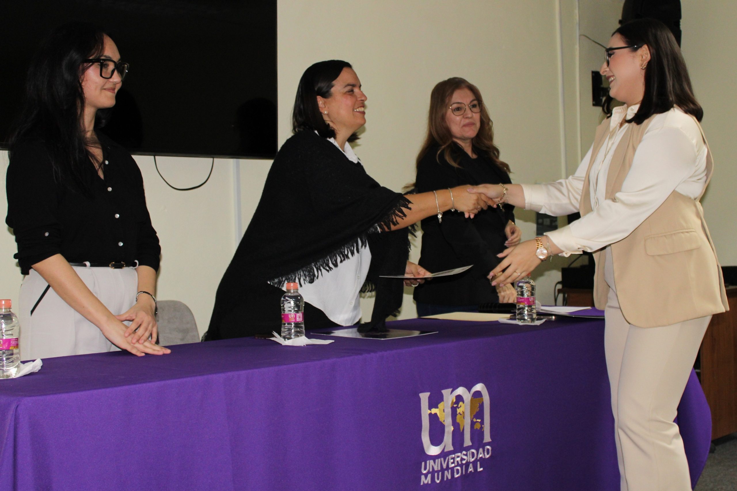 Encabezaron el acto la doctora María José Hinojosa Moreno, rectora de la Universidad Mundial; la maestra Karen Santana Armendáriz, vicerrectora académica; y la licenciada Miriam Cázares Durán, directora de Servicios Escolares, quienes refrendaron el compromiso institucional de seguir formando profesionales con visión de futuro, responsabilidad social y sólidos valores.
