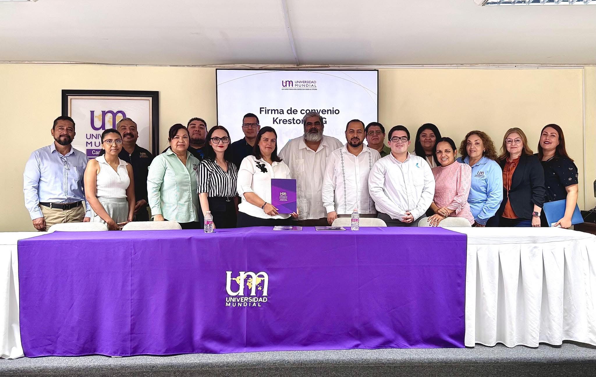 La Universidad Mundial firmó un convenio de colaboración con la firma Kreston BSG, con el propósito de fortalecer la vinculación entre el ámbito académico y el profesional, creando oportunidades para que los estudiantes de las licenciaturas en Contaduría, Derecho y Administración realicen sus prácticas profesionales en un entorno real de desarrollo empresarial.