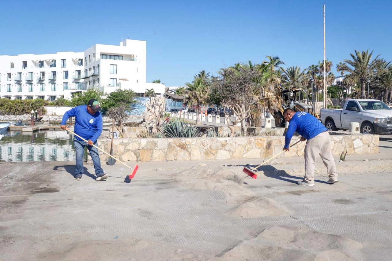 Los Cabos, Baja California Sur.– Con el propósito de fortalecer las acciones de conservación ambiental y mejorar los espacios públicos, personal operativo de la Zona Federal Marítimo Terrestre (Zofemat) Los Cabos, en coordinación con el equipo de Puerto Los Cabos, realizó una jornada de limpieza y mantenimiento en el área del estacionamiento de La Playa.